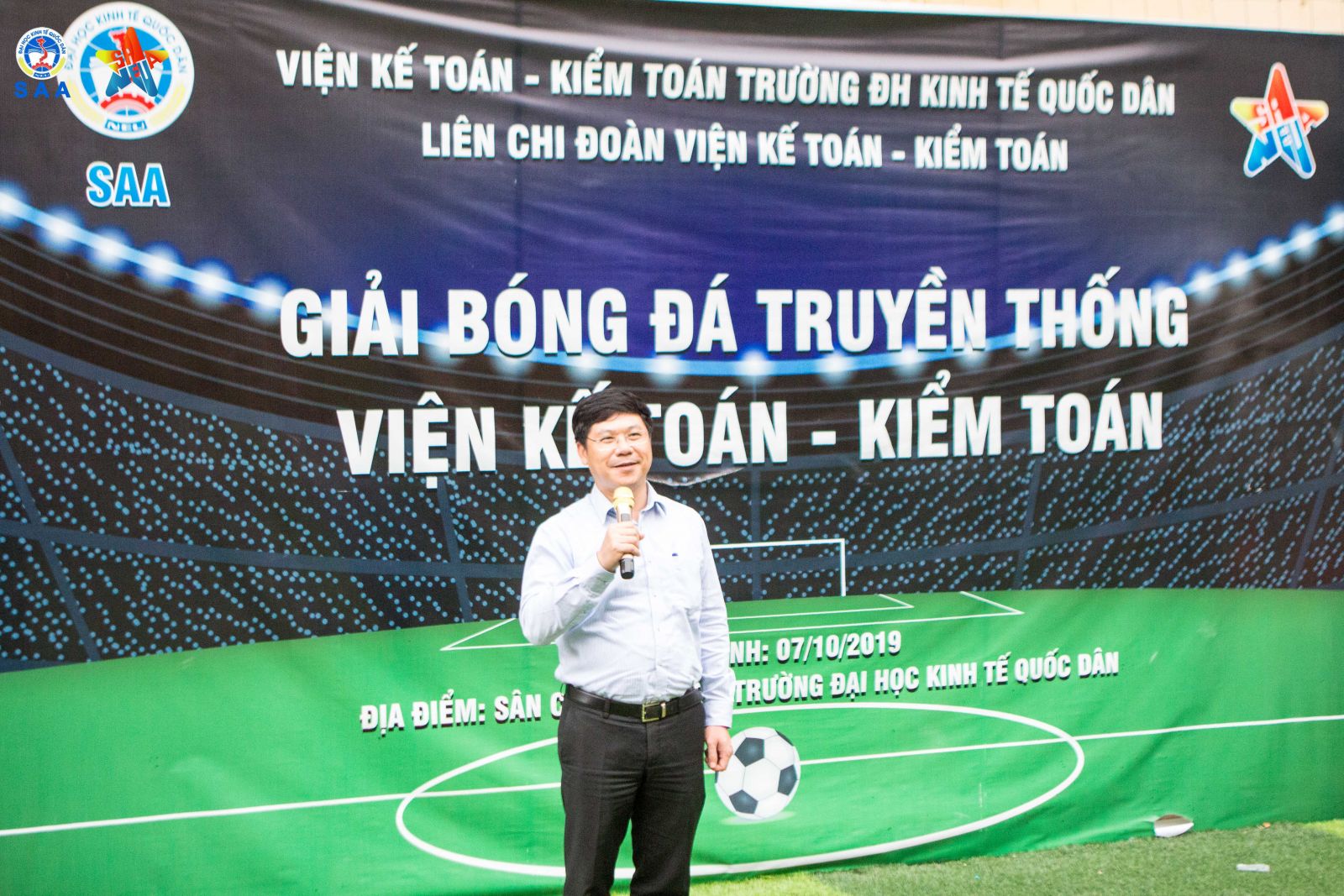 Mở đầu buổi lễ, PGS.TS Nguyễn Hữu Ánh - Viện Trưởng Viện Kế toán - Kiểm toán phát biểu chia sẻ về giải đấu và tuyên bố bế mạc Giải bóng đá truyền thống Viện Kế toán – Kiểm toán năm 2019 - 2020. Thầy cho rằng đây là giải đấu thể thao thường niên có chất lượng, có quy mô lớn, thu hút được đông đảo các bạn sinh viên tham dự. Thầy mong rằng Liên chi đoàn sẽ tiếp tục duy trì các hoạt động thể thao khác dành cho sinh viên, mang đến những sân chơi bổ ích, tăng cường sức khỏe, nâng cao tinh thần thể thao trong sinh viên Viện Kế toán – Kiểm toán.